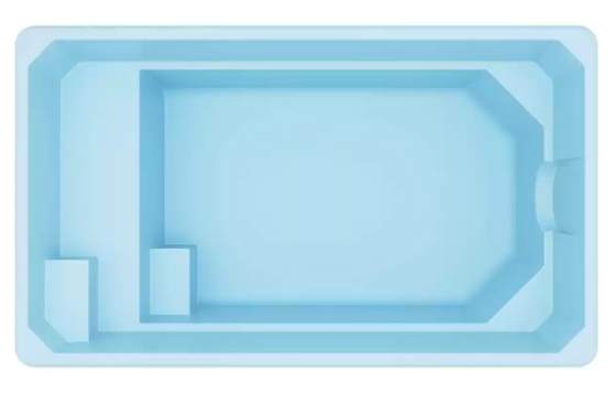 Спуск продуман максимально удобно: одна широкая ступень-подиум и две компактные позволяют безопасно заходить в воду взрослым и детям. При этом вся остальная длина чаши остается свободной для плавания.
